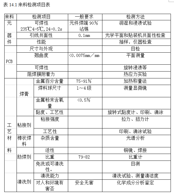 表14.1來料檢測項目表