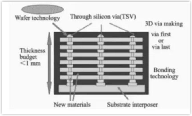 3D芯片堆疊結(jié)構(gòu)示意圖