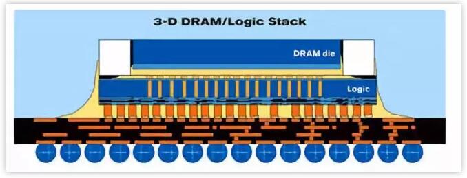 為了避免這種延遲,同時(shí)也為了滿足性能、頻寬和功耗的要求,設(shè)計(jì)人員開發(fā)出在垂直方向上將芯片疊層的新技術(shù),也就是三維堆疊封裝技術(shù),該技術(shù)可以穿過有源電路直接實(shí)現(xiàn)高效互連。