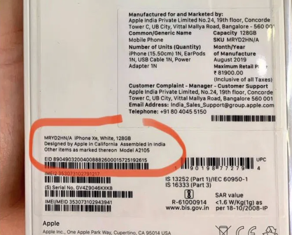 2019 年 10 月,一個包裝盒背面印著 Assembled in India(印度組裝)的 iPhone XR 終于出現(xiàn),富士康成功在印度造出了蘋果手機。